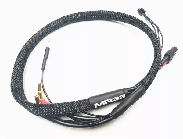 Das schwarz ummantelte MR33 Ladekabel ermöglicht das Laden von Akkus mit 4 und 5mm Buchsen. Der Balancer Anschluss hat einen XH Stecker und das Kabel hat eine Gesamtlänge von 600mm. Ladegerätanschluss: XT60